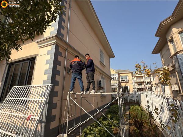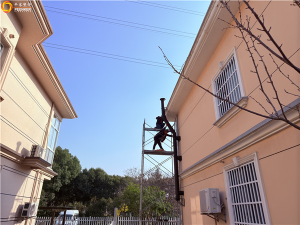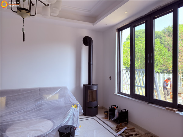 项目情况:该项目位于南京高淳凤山路双红新村,为独栋别墅,已经装修好,壁炉安装在客厅中,烟囱穿侧墙到户外,加高过屋檐,由平客壁炉项目部带队上门安装。