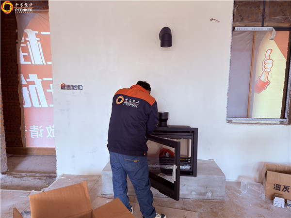 项目情况:该项目位于安徽省马鞍山市含山县陶厂镇铜庙村,业主提前做好户外烟囱预埋(非我司配套烟囱配件),平客壁炉项目部带队上门进行嵌入式壁炉安装。