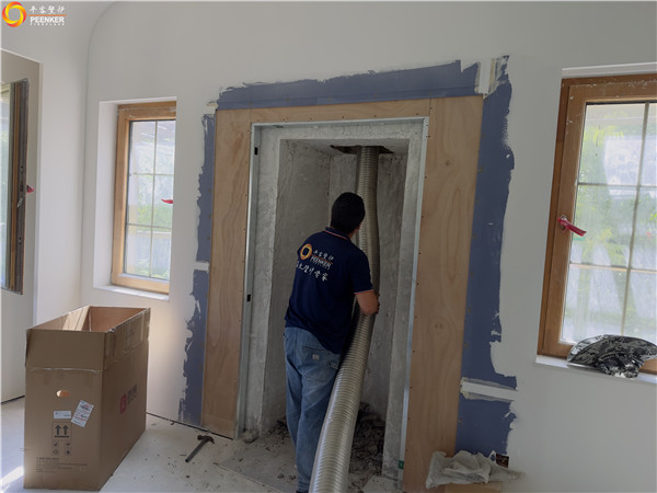 项目情况:该项目为独栋别墅,自带砖石炉膛与烟道,在2024年5月份,根据装修进度,壁炉烟囱先入场安装,2024年11月15日,丹麦Aduro宽屏火炉入场,由【平客壁炉】项目部带队上门安装。