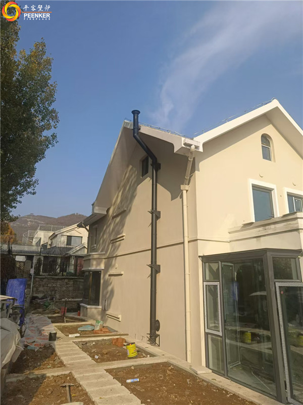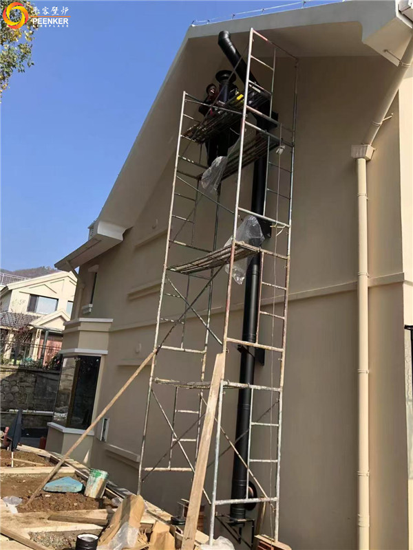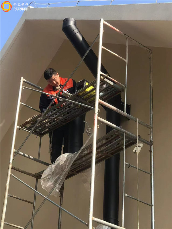 项目情况:该项目为北京独立建筑,壁炉安装在客厅位置,烟囱从壁炉背部出侧墙到户外加高过屋檐,由【平客壁炉】项目部上门指导安装。