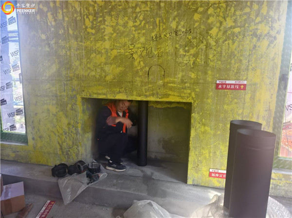 项目介绍:该项目位于南京山河水别墅,该小区为独栋别墅,自带砖石炉膛和烟囱,业主选购的英国Fireline嵌入壁炉安装在一楼,烟囱直穿到砖石烟囱顶,该项目由平客壁炉项目部带队上门安装。