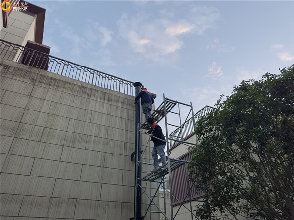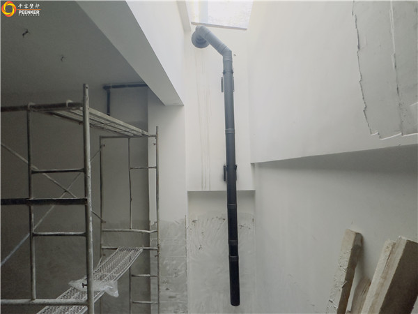 项目情况:该项目是联排别墅边户,业主选购来自丹麦Aduro A14独立式火炉安装于地下室天井位置,烟囱在天井往上加高从侧墙出到户外,再竖直加高到楼顶位置。今天将壁炉烟囱安装到位,壁炉放置现场,由平客壁炉项目部带队上门安装安装。
